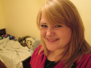 There is this less-active that we found on our ward list, and she is adorable!!! She was baptized about five years ago, but her mom moved in with her. Her mom has really bad asthma, and so she's scared to leave her on her own. So, we're trying to find out how to help her. Anyways, we found out that she cuts hair, so we thought it would be a great bonding experience for her to cut mine! So I cut off about five inches and got bangs! =) Yay!